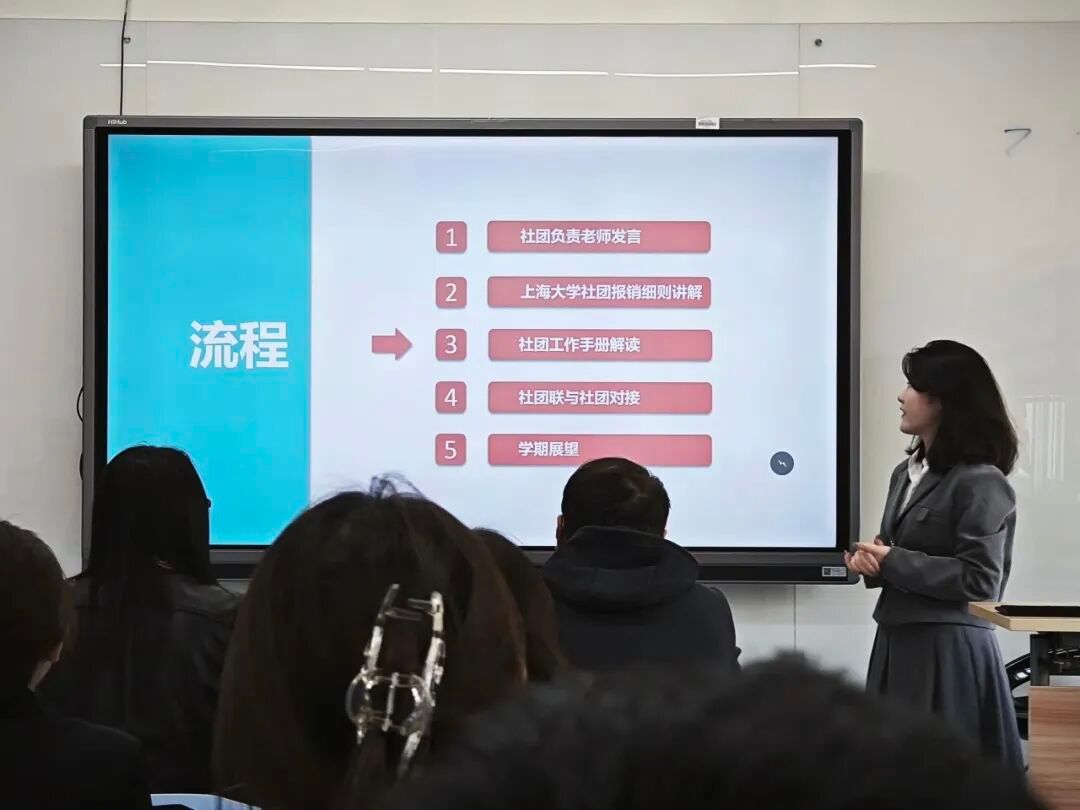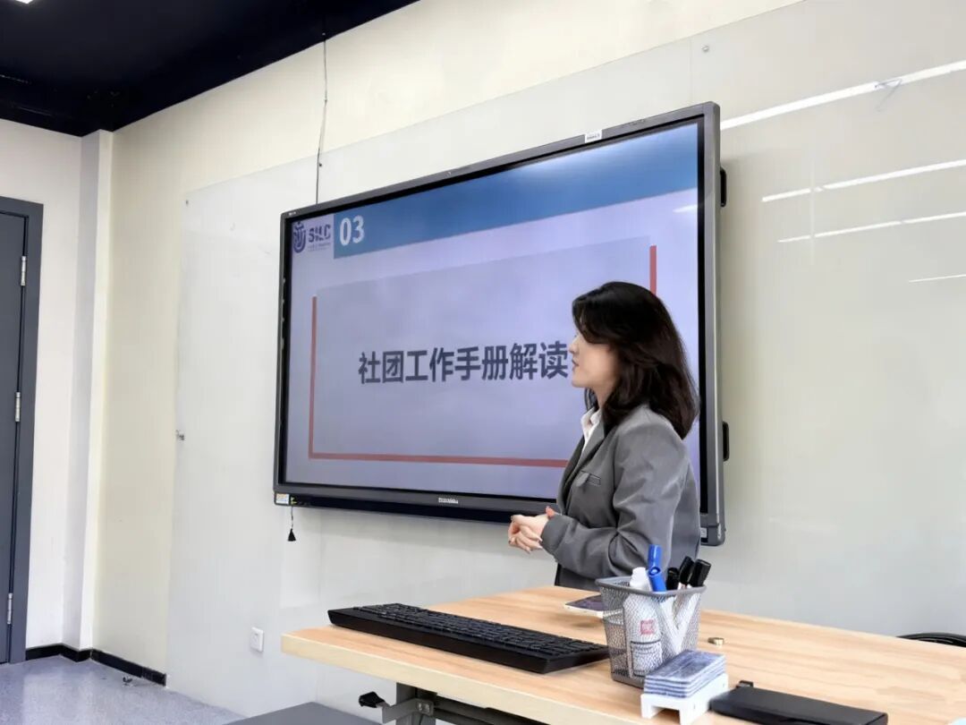 紧接着,陈怡如部长在会议上解读了社团联合部依据校新管理办法修订的《社团工作手册》。她强调社团必须遵守社团基本准则,并详细讲解了活动策划、宣传、场地借用及财务管理等活动举办流程。此外她还强调了社团奖惩与淘汰机制以确保社团活力,并明确了社团权利,同时鼓励各社团强化内部管理。最后,她以 “合规”“品牌”“联合” 展望未来,呼吁各大社团积极参与社团宣传活动,发展品牌活动,打出品牌效应,共同实现优秀社团建设。