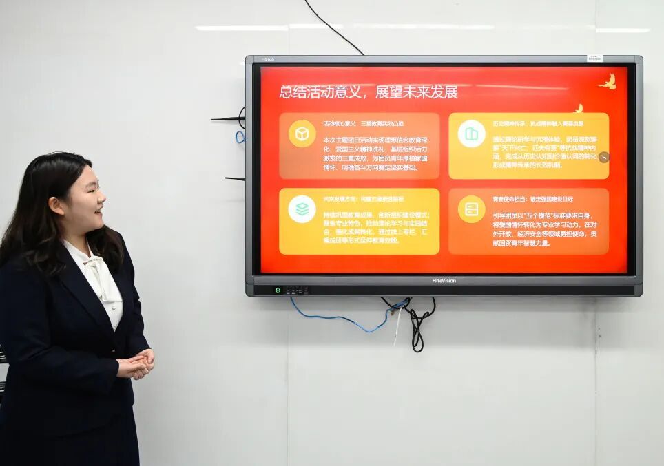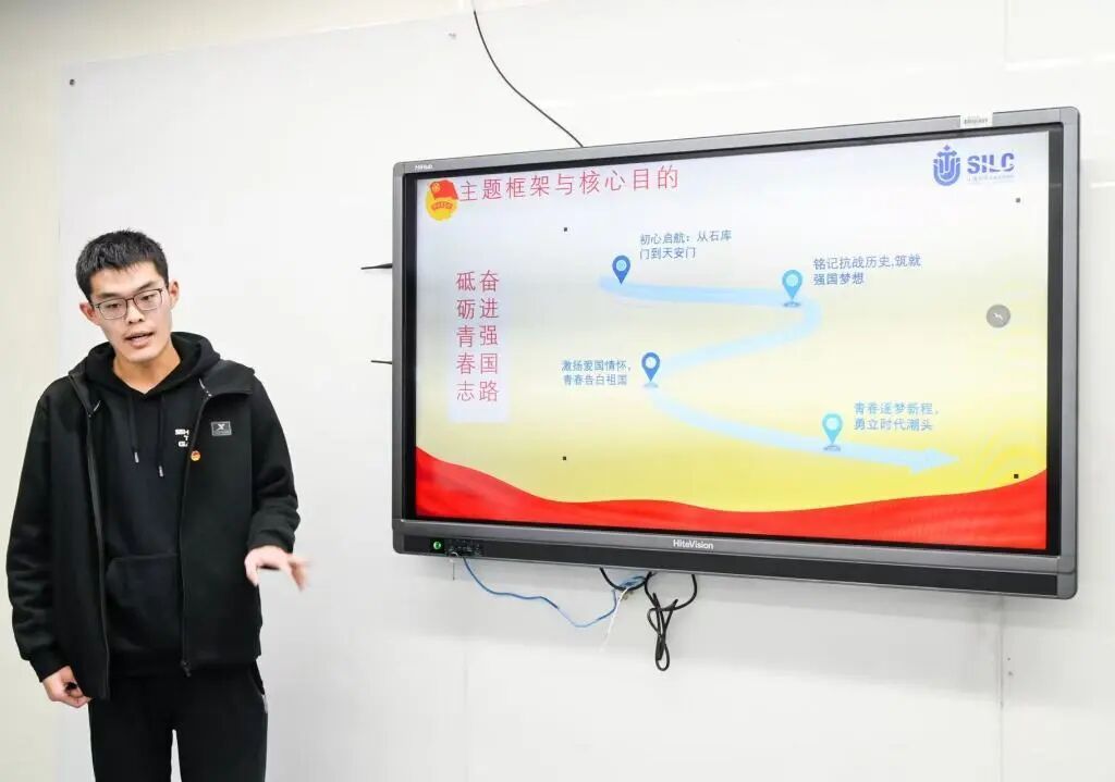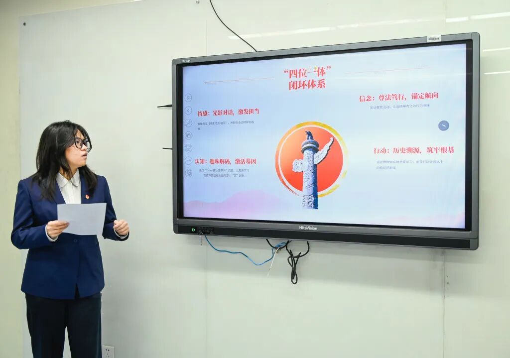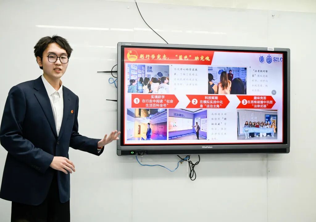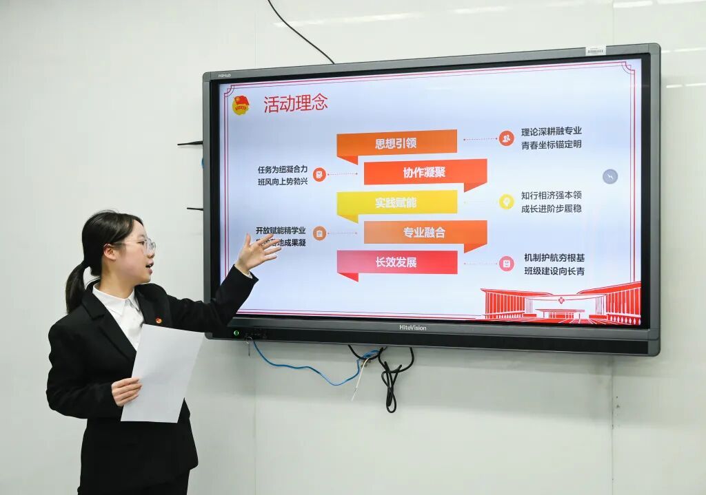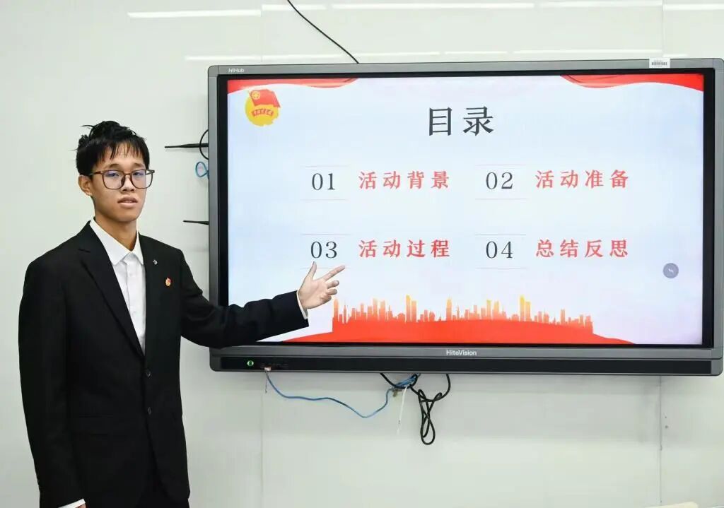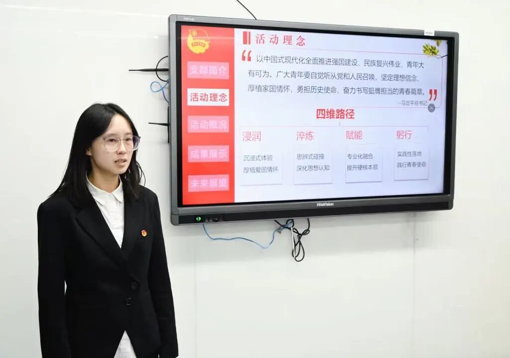本次团日活动围绕“铭记抗战历史,铸就强国梦想”、“激扬爱国情怀,青春告白祖国”、“青春逐梦新程,勇立时代潮头”、“聚焦进博机遇,共绘开放蓝图”、“弘扬宪法精神,践行青年责任”五个主题开展。在答辩环节中,各团支部代表依次上台展示了丰富多样的团日活动设计理念、实施过程与取得成效,彰显了班团活力与青年学子的青春风采。