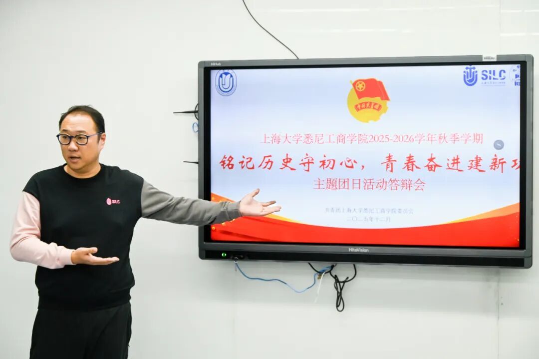 2025年12月10日17:30,“铭记历史守初心,青春奋进建新功”——上海大学悉尼工商学院2025-2026学年秋季学期主题团日活动答辩会在文博204教室顺利举行。上海大学悉尼工商学院团委委员、学生会秘书长钱俊迪,团委委员严思远、孙嘉婧出席了本次活动。活动由组织部干事、2025级工商管理专业本科生吕欣悦主持。
