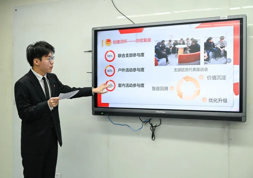 答辩环节结束后,钱俊迪对本次活动进行总结发言。他首先对大家开展的丰富活动以及对本次答辩会的精心筹备进行了肯定。随后,他强调了细节决定成败,要求各团支部在今后的团日活动推进与答辩展示中,进一步打磨细节。最后,他鼓励各团支部互相学习,共同进取,在团日活动中增长知识,转递价值,带领青年学子践行新时代青春使命,打造更有凝聚力,更具魅力和活力的团支部。