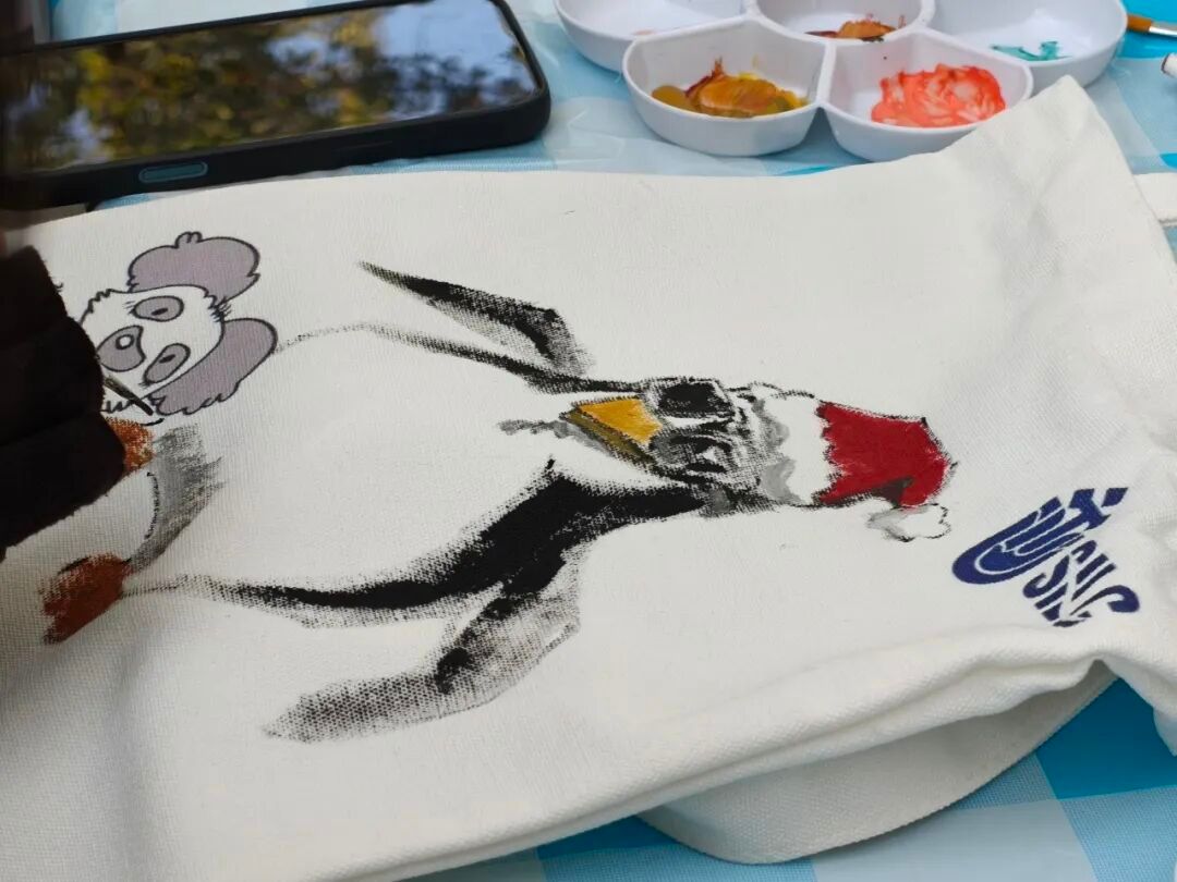 从空白布袋到创意满满的作品,每一个步骤都凝聚着同学们的用心。当最后一位同学放下画笔,举起自己的作品拍照留念时,这场活动也迎来了尾声。大家捧着专属的手绘帆布袋,脸上满是成就感,有的同学当场就把布袋挎在肩上,迫不及待地展示自己的创作成果。