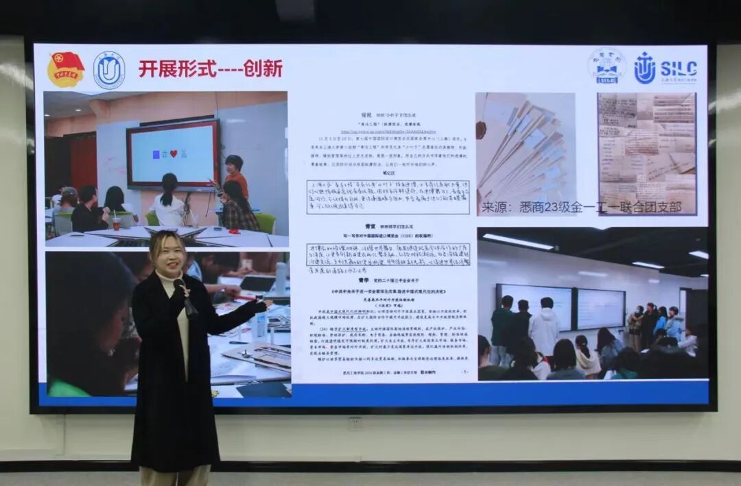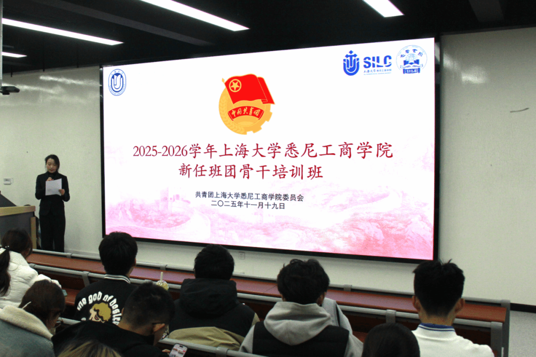 为深入学习贯彻习近平新时代中国特色社会主义思想,全面落实立德树人的根本任务,提高新任班团骨干的综合素质,为班团组织建设注入新动力,悉尼工商学院于2025年11月19日16:50在文德楼205教室开展“红色血脉映青春 华彩绽放担使命”——悉尼工商学院班团建设分享会。活动邀请到荣获2024-2025学年上海大学“十佳活力团支部”称号的2024级国际经济与贸易二班、2024级金融一班的团支书分别进行分享,王昕妮担任主持人。