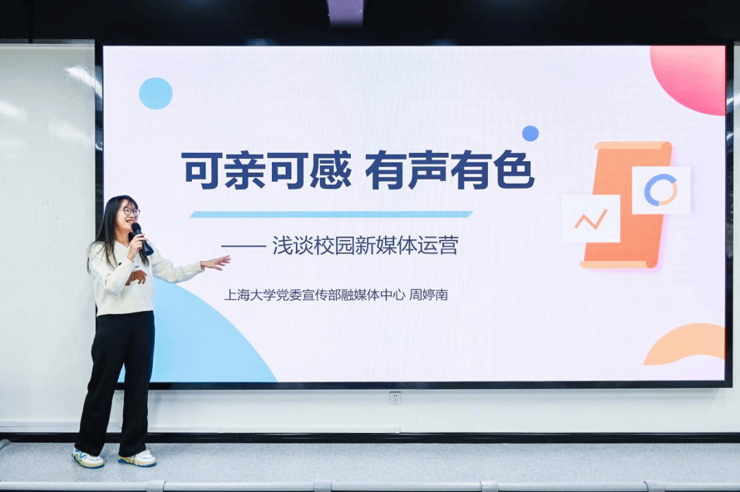 为提升班团骨干新媒体运营能力,为校园文化传播提供新动能,悉尼工商学院团委于 2025 年 11 月 19 日 11:50 在文德楼 205 教室开展新媒体技能培训活动,活动由上海大学党委宣传部周婷南担任主讲。